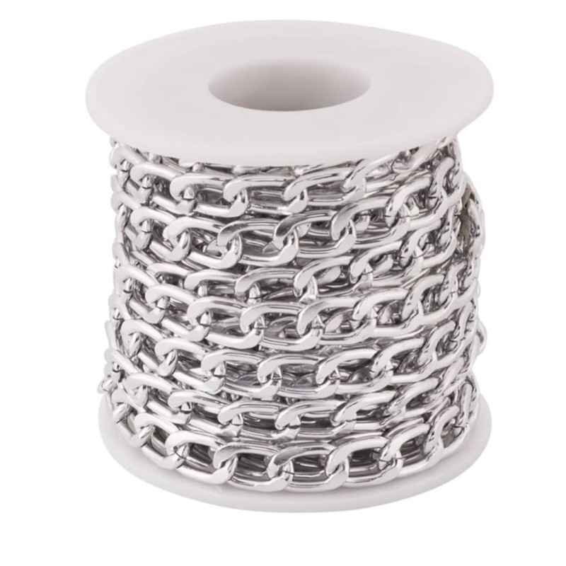 Cette chaîne s’appelle une chaîne cubaine Elle est très appréciée pour son style à la fois classique et moderne, idéale pour la création de bijoux élégants comme des bracelets ou des colliers ou pour réalisations artisanales.
